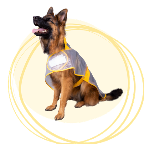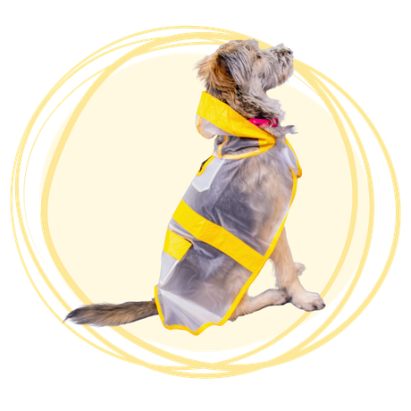 Protege a tu peludo de la lluvia sin esconder su pelaje con nuestra capa impermeable transparente con bordes amarillos. Su diseño liviano y funcional permite libertad de movimiento y una cobertura completa del cuerpo y cabeza. Ideal para perros de todas las razas.