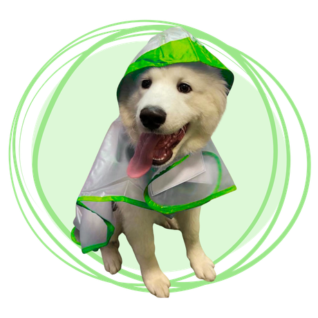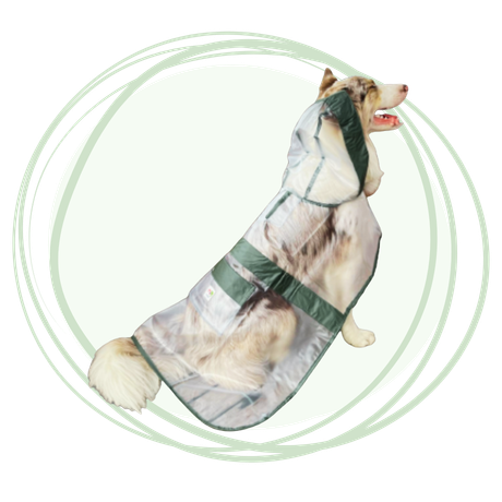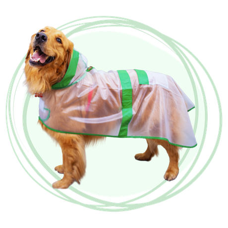 Protege a tu peludo de la lluvia sin esconder su pelaje con nuestra capa impermeable transparente con bordes verdes . Su diseño liviano y funcional permite libertad de movimiento y una cobertura completa del cuerpo y cabeza. Ideal para perros de todas las razas.