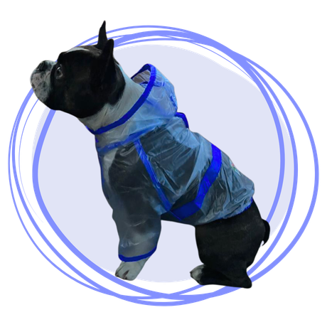 Chaqueta impermeable transparente perros,está diseñada para brindar mayor cobertura y ajuste en el tronco , cuello y cabeza de animal. Su estilo chaqueta permite proteger pecho, espalda y parte frontal del cuerpo, manteniendo a tu mascota seca incluso en lluvias intensas.